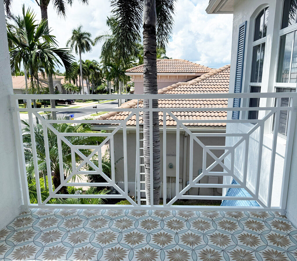 Fabricate fully welded custom railing, powdercoated (color Bronze) and installed Fabricate fully welded aluminum Southern Cross railing made with 1" pickets, base plate mounted, powder coated white and installation included